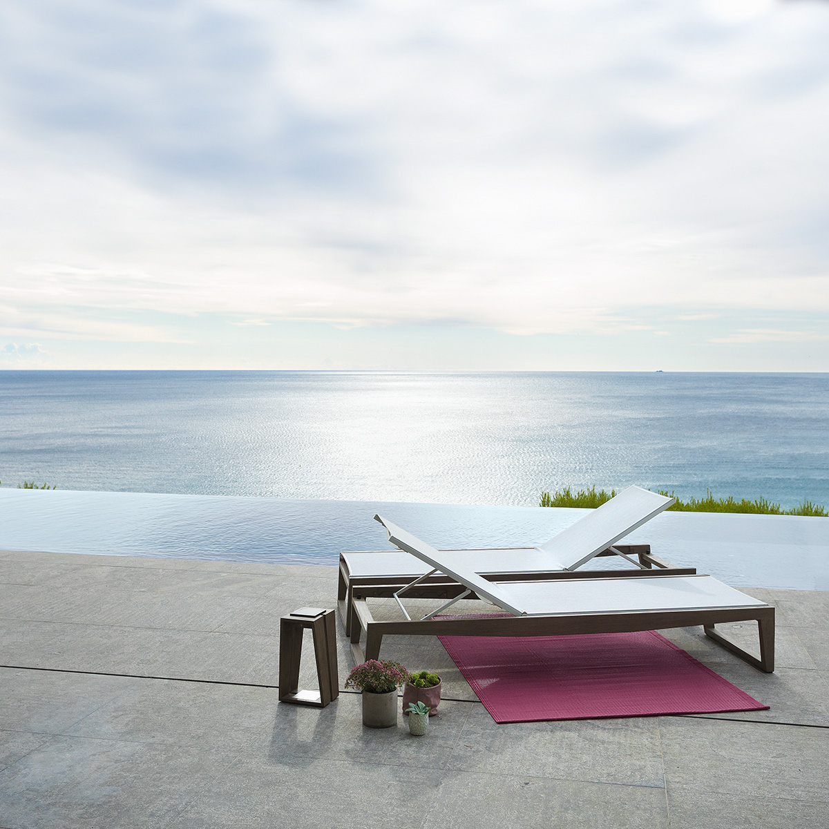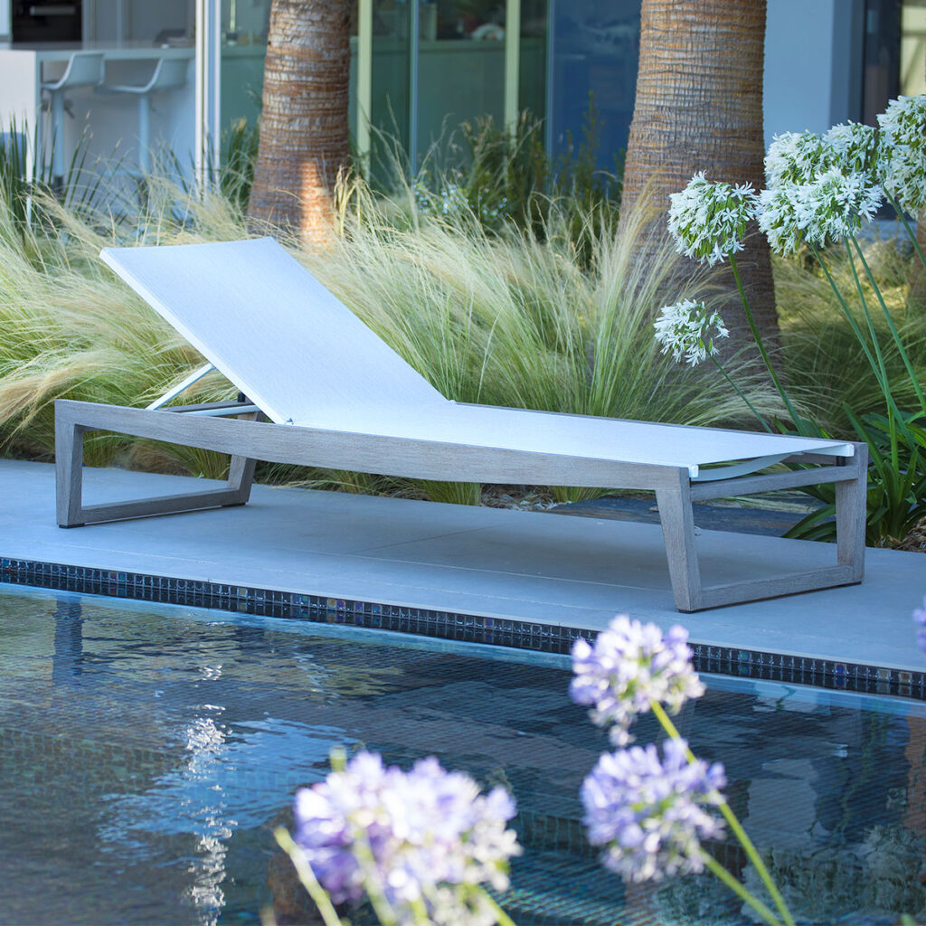 Par ailleurs, le confort exceptionnel du bain de soleil Skaal repose sur son couchage en toile Batyline® Eden de haute technologie. D’abord, ce textile premium offre un toucher agréable et une souplesse d’assise qui épouse délicatement les formes de votre corps. La couleur blanc chiné apporte une touche de lumière et de fraîcheur particulièrement élégante en été. Ensuite, sa large assise permet de se détendre pleinement, tandis que son dossier réglable s’adapte à toutes vos envies de lecture ou de repos. De cette façon, il répond aux exigences de confort des terrasses les plus prestigieuses. En outre, nous vous invitons à venir tester cette ergonomie directement dans notre showroom Vert Parc Mobilier.