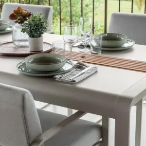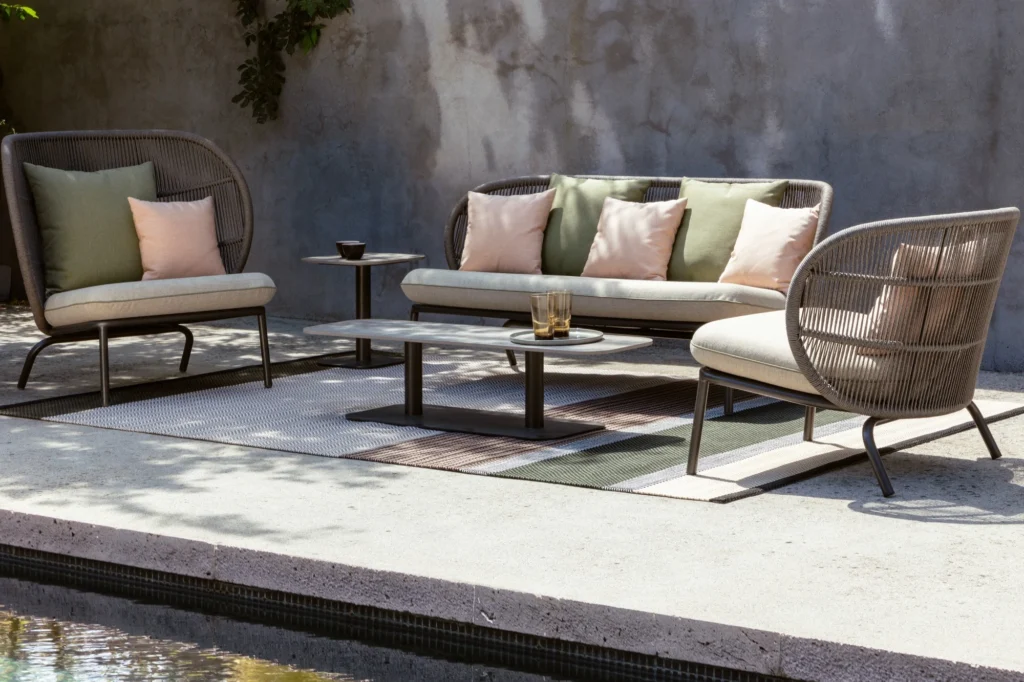 Par ailleurs, le raffinement offert par la table d’appoint Kodo repose sur l’utilisation de matériaux de haute technologie pour son plateau. D’abord, la combinaison de la céramique et de l’aluminium offre un contraste de matières à la fois moderne et intemporel. Ensuite, ce modèle est extrêmement pratique grâce à sa surface minérale résistante aux rayures et aux taches, ce qui facilite grandement son usage lors de vos moments de détente. De plus, ses dimensions ont été pensées pour s’intégrer harmonieusement dans les espaces les plus restreints tout en offrant une fonctionnalité maximale. De cette façon, elle répond aux exigences de mobilité des jardins contemporains. En outre, venez découvrir la finesse de ce tressage et de ces finitions dans notre showroom Vert Parc Mobilier.