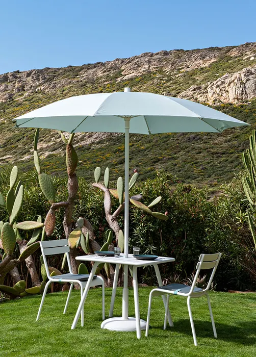 La robustesse de cette pièce repose sur une structure 100 % aluminium de haute qualité. Ce matériau noble garantit une résistance totale aux intempéries, à l’humidité et même aux conditions salines des bords de mer. La peinture poudre haute protection, appliquée par Fermob, protège durablement le plateau contre les rayons UV et les rayures. Désormais, vous n’avez plus à vous soucier de la corrosion. Un simple nettoyage à l’eau savonneuse suffit pour que votre table retrouve son éclat d’origine. Ainsi, vous investissez dans un mobilier durable qui traversera les saisons sans prendre une ride.